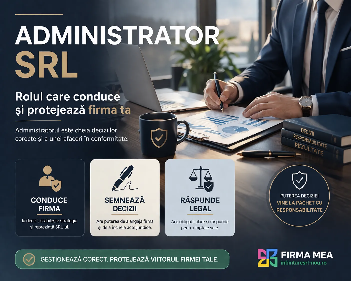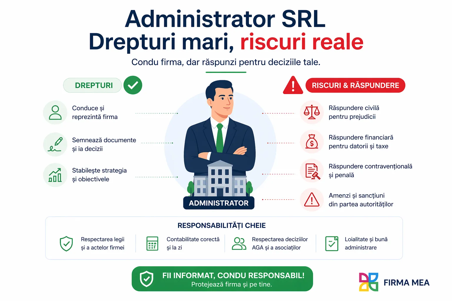 Fiecare SRL trebuie să aibă cel puțin un administrator. Administratorul este persoana împuternicită de asociat/asociați pentru a gestiona activitatea SRL.