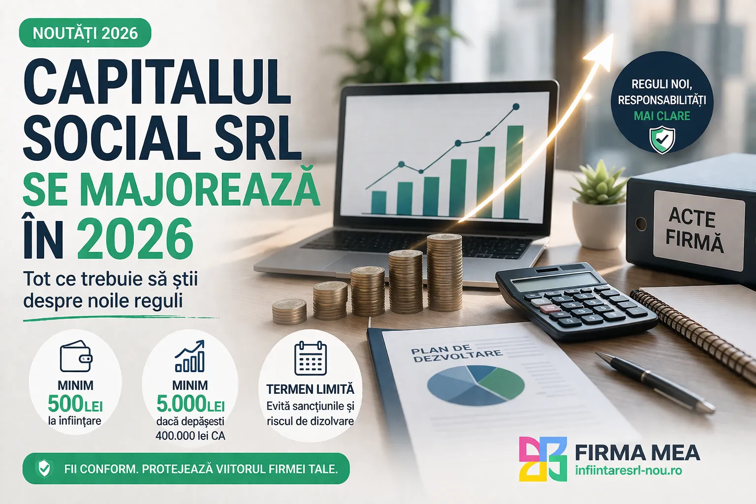 Începând cu 1 ianuarie 2026 se majorează capitalul social la 500 lei și toate SRL-urile care se vor înființa după