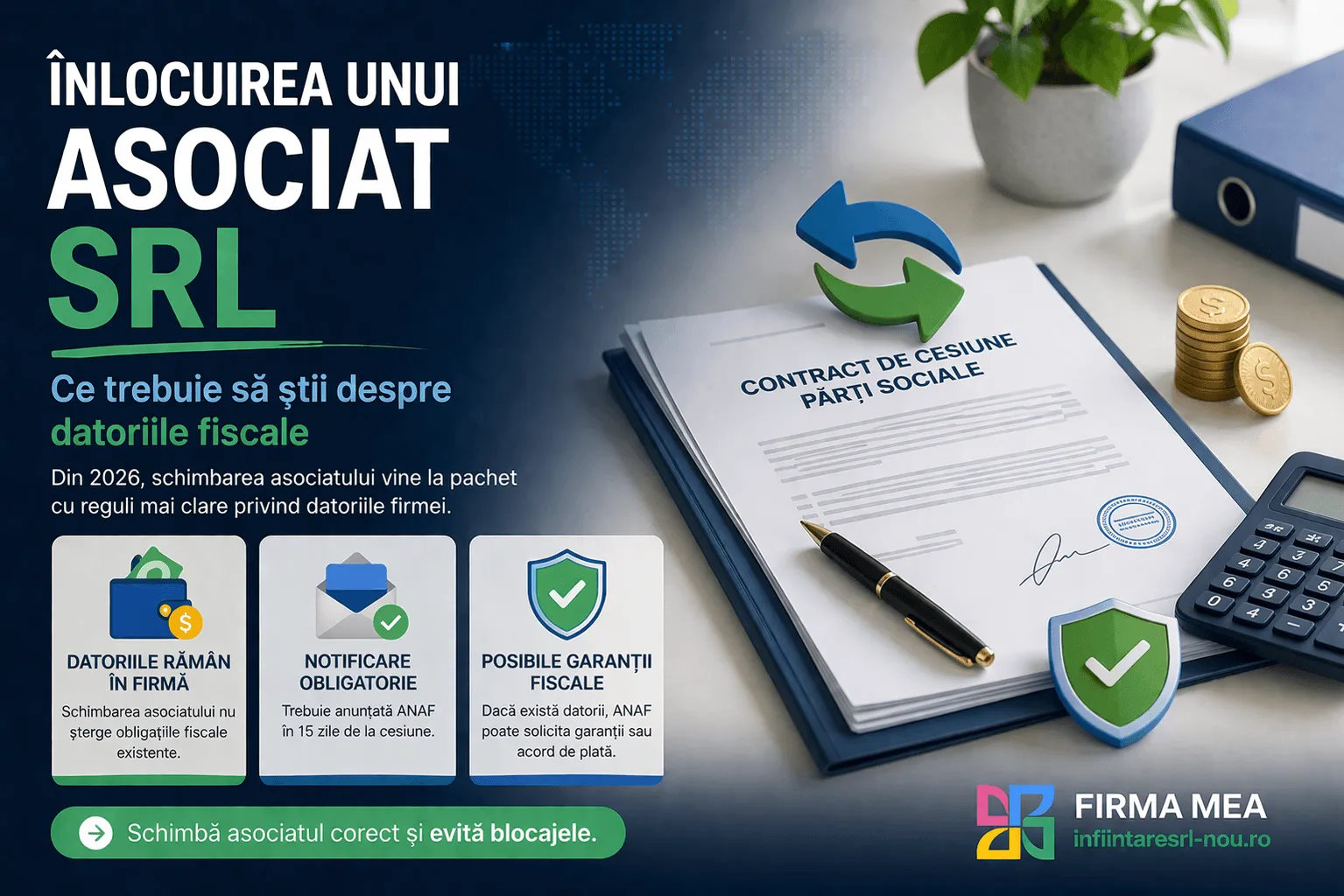 Articol actualizat în aprilie 2026 Începând cu 1 ianuarie 2026, s-au înăsprit condițiile pentru efectuarea unei cesiuni de părți sociale.